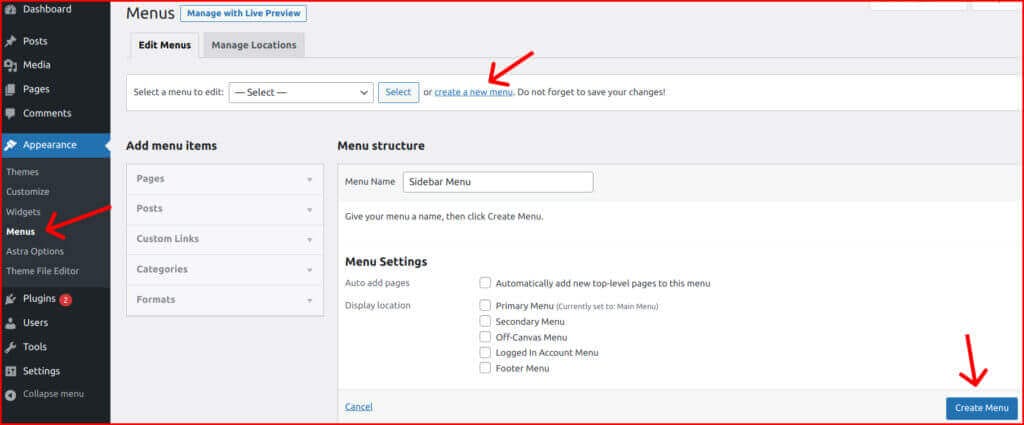 Our new menu is added in the sidebar, as you can see in the screenshot